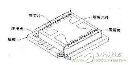 新式的壓阻式加速度傳感器的結構,它是由整塊硅晶體制成的。它以硅壓阻應變片作為敏感元件,這實際上是一塊固定的硅電阻,其電阻的變化與所承受的機械應力成正比。這可以由體積很小的整體硅片經過微細加工制成,因此又稱為整體式傳感器,從而避開了把硅應變片粘貼到懸梁臂上的老式結構所帶來的機械連接不準確的影響。壓阻式加速度傳感器在電路中構成為惠斯登電橋,產生與振動加速度成正比的電信號。由于是配對使用,所以保證了在不同的溫度條件下輸出的穩(wěn)定性。