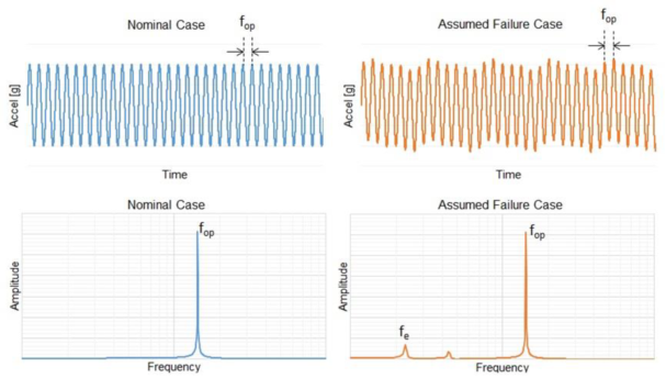 假設(shè)fop為機(jī)械系統(tǒng)(比如旋轉(zhuǎn)電機(jī))的工作頻率,fe為系統(tǒng)的錯誤/故障模式頻率(圖3)。在此例中,fe低于fop并且在該圖中顯示,也就是說,由于機(jī)身松動,電機(jī)正在緩慢振動。對于傳統(tǒng)加速度傳感器,為了檢測這種故障模式,人們需要用MCU/DSP進(jìn)行頻率分析。而MCU/DSP一直保持工作狀態(tài),會導(dǎo)致額外的內(nèi)存空間需求以及更高的功耗。