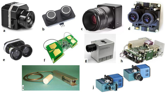 無(wú)人機(jī)04 00034 g004 550 圖4. 采礦無(wú)人機(jī)上常用傳感器的示例:(a)紅外傳感器[ 123 ],(b)超聲傳感器[ 124 ],(c)RGB攝像機(jī)[ 125 ],(d)立體攝像機(jī)[ 126 ],(e)激光測(cè)距儀[ 126 ],(f)超寬帶雷達(dá)(UWB)[ 127 ],(g)高光譜傳感器[ 128 ],(h)磁傳感器[ 129 ],(i)氣體探測(cè)器[ 130 ], (j)可見和近紅外光譜范圍(VNIR)[ 131 ]。