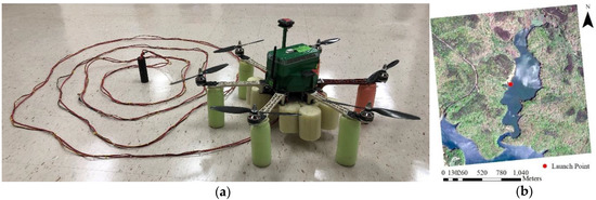 無(wú)人機(jī)04 00035 g002 550 圖2. (a)與飛機(jī)集成的傳感器節(jié)點(diǎn),以及(b)Issaqueena湖的發(fā)射地點(diǎn)。