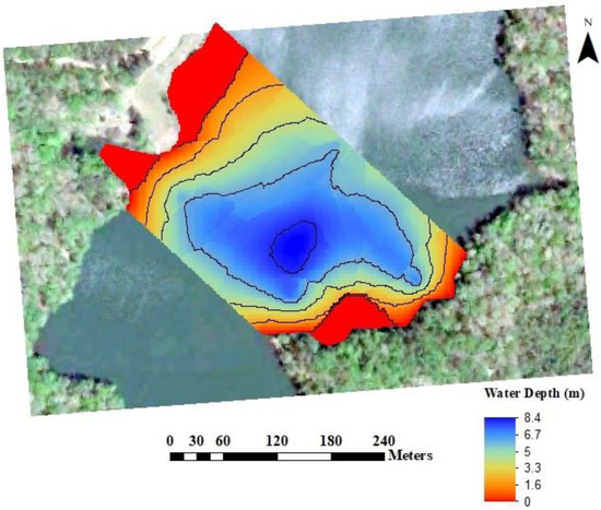 無(wú)人機(jī)04 00035 g005 550 圖5. 任務(wù)計(jì)劃范圍內(nèi)的Issaqueena湖水深圖。