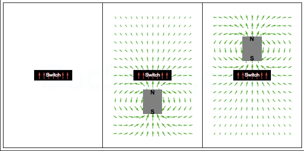這些開關(guān)的操作通常取決于磁場(chǎng)強(qiáng)度,磁場(chǎng)方向和設(shè)備公差。在大多數(shù)單極開關(guān)中,磁場(chǎng)需要垂直指向封裝的表面。