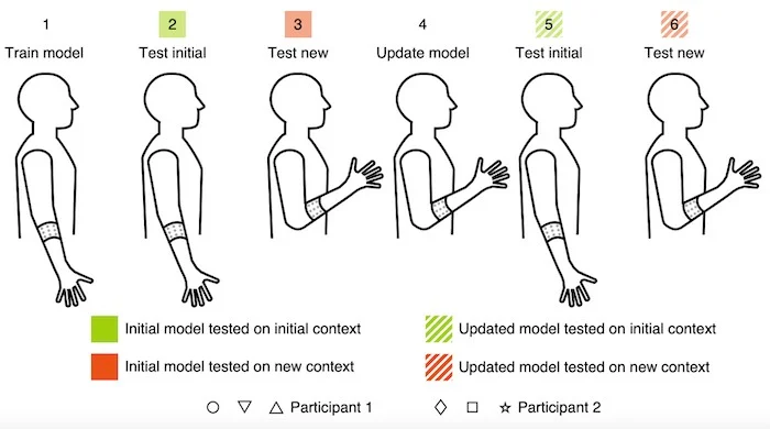 一個高級圖,顯示了研究人員用來向運動傳感器提供上下文的位置。圖片由Nature Electronics和UC Berkeley提供