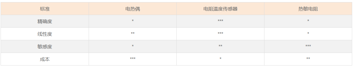 對(duì)于接觸式傳感器,應(yīng)該使用哪種技術(shù)? 有幾種不同的選擇: 熱電偶,電阻傳感器等。不能說一種技術(shù)比另一種技術(shù)更好,每種技術(shù)都有其優(yōu)點(diǎn)和缺點(diǎn):