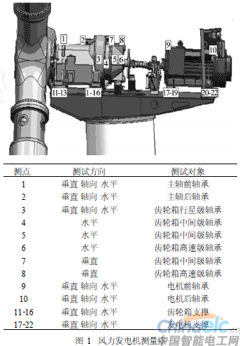 現(xiàn)場(chǎng)測(cè)量點(diǎn)的布置對(duì)于風(fēng)力發(fā)電機(jī)在線監(jiān)測(cè)和診斷系統(tǒng)來(lái)說(shuō)一直是個(gè)難題,至今也沒(méi)有得到很好的解決,F(xiàn)場(chǎng)測(cè)量點(diǎn)選擇的不同,對(duì)于監(jiān)測(cè)系統(tǒng)信號(hào)分析具有很大的影響。不同的布置方案,得到的結(jié)果不盡相同。