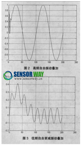 根據(jù)振動(dòng)時(shí)間歷程獲得的要求不同來選擇不同>的測量儀器。周期振動(dòng)、穩(wěn)態(tài)隨機(jī)振動(dòng)可根據(jù)被測頻率范圍、振動(dòng)幅值 大小來選擇儀器,而對(duì)于沖擊振動(dòng)(如爆破、火箭沖擊視速 度、張拉釋放等非穩(wěn)態(tài)振動(dòng)過程)選擇儀器時(shí)還應(yīng)注意考慮儀器的瞬態(tài)響應(yīng)影響。圖2為具有零頻特性的加速度計(jì)在受到?jīng)_ 擊正弦振動(dòng)時(shí)的反應(yīng)曲線,在被測信號(hào)上疊加有高頻衰減信號(hào),此為加速度計(jì)的自由振動(dòng)項(xiàng),用低通濾波可去掉其影響。 圖3為加速度計(jì)不是從零頻開始的記錄值。圖3中有一個(gè)低頻 衰!f過程,此為測量儀器的低頻下限引起的瞬態(tài)過渡過程,在數(shù)據(jù)處理時(shí)應(yīng)予以高通濾去除。