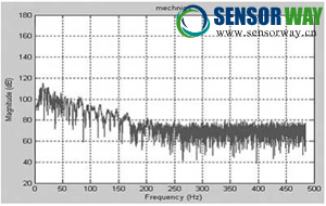 從圖3、圖4上可明顯的看出二者的差別。壓阻式振動加速度傳感器在300Hz內(nèi)的通頻帶內(nèi)平坦、線信度 好,能真實地反應(yīng)振動信號的大小;而動圈式振動加速度傳感器的帶寬不足300Hz,且通頻帶極不平坦, 線信度不好,放大后,反映的是畸變的振動信號。動圈式振動加速度傳感器已無法采集100Hz以上的振動 信號,后面的幅頻特性圖對比更能說明這一點。
