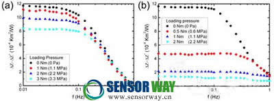圖3 觀測(cè)到的熱阻增量隨不同負(fù)載壓力的變化曲線:(a)單層PVDF177薄膜及(b)三層 PTFE45薄膜樣品。