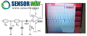 圖3 濾波電路 圖4 脈搏波的示波器輸出信號