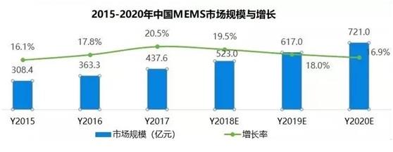 Yole Developement 數據顯示,全球MEMS傳感器產品需求近年增勢迅猛,2017年MEMS傳感器市場規(guī)模為437.6億元,平均以超過15%的增長率增長,2020年預計將達到721億元。
