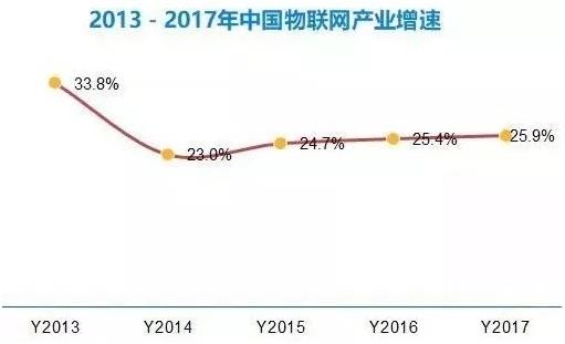 物聯網發(fā)展已經成為國家層面技術及產業(yè)創(chuàng)新的重點方向,推進物聯網產業(yè)化、規(guī);l(fā)展的技術環(huán)境已基本具備,為了保障物聯網產業(yè)化規(guī);l(fā)展,尤其在技術標準規(guī)范、自主知識產權、信息安全等方面相關政策成為加快推進物聯網發(fā)展的主要動力之一。近幾年中國物聯網產業(yè)增速都在20%以上,2017年,中國物聯網市場規(guī)模超過10000億元。