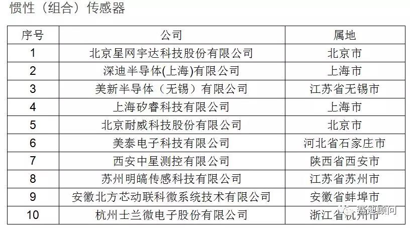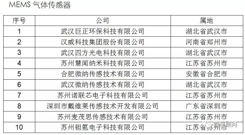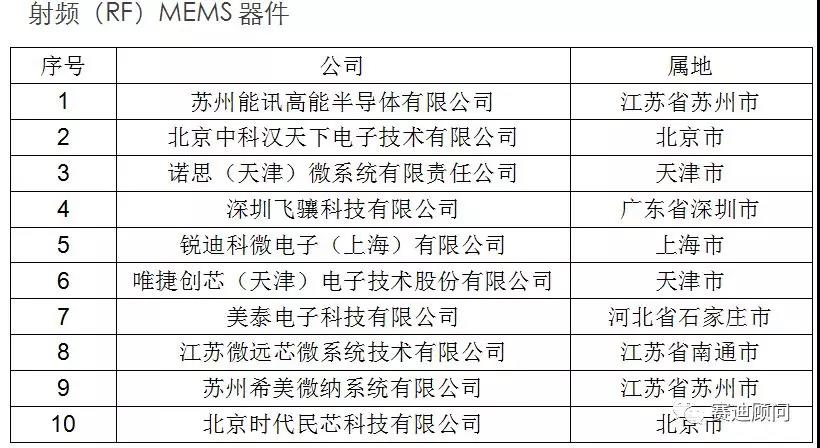 國內(nèi)MEMS細(xì)分領(lǐng)域優(yōu)秀企業(yè)(排名不分先后)