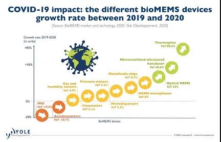 生物MEMS設(shè)備定義為集成到醫(yī)療設(shè)備中并用于IVD和生命科學(xué)的MEMS傳感器和微流控設(shè)備,2019年的市場(chǎng)規(guī)模為37億美元,預(yù)計(jì)到2025年將達(dá)到63億美元,2019年至2025年的復(fù)合年增長(zhǎng)率為9.2%。