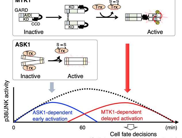 一個(gè)研究小組在醫(yī)學(xué)科學(xué)的東京日本大學(xué)研究院,由Mutsuhiro Takekawa教授為首,已發(fā)現(xiàn)一種新的機(jī)制,是引起通過(guò)檢測(cè)細(xì)胞反應(yīng)的氧化應(yīng)激在人體內(nèi)。MTK1 SAPKKK被認(rèn)為是一種新型的人類氧化應(yīng)激傳感器,可以感應(yīng)體內(nèi)過(guò)量的活性氧并將該信息傳遞給細(xì)胞,從而導(dǎo)致細(xì)胞死亡和炎性細(xì)胞因子的產(chǎn)生。這項(xiàng)研究的結(jié)果發(fā)表在2020年6月24日的《科學(xué)進(jìn)展》上。