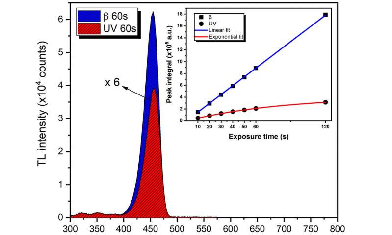 第二個是兩個響應會根據(jù)不同的模式而變化,從而可以在未來的設備中解決紫外線干擾問題。該材料以線性方式響應β射線:隨著其對電離輻射的暴露增加,其發(fā)光強度以連續(xù)曲線遞增。在紫外線輻射的情況下,材料的發(fā)光度不會線性變化。Trindade說:“有一個飽和點,在這個飽和點之后,即使繼續(xù)暴露,發(fā)光也會停止增強!