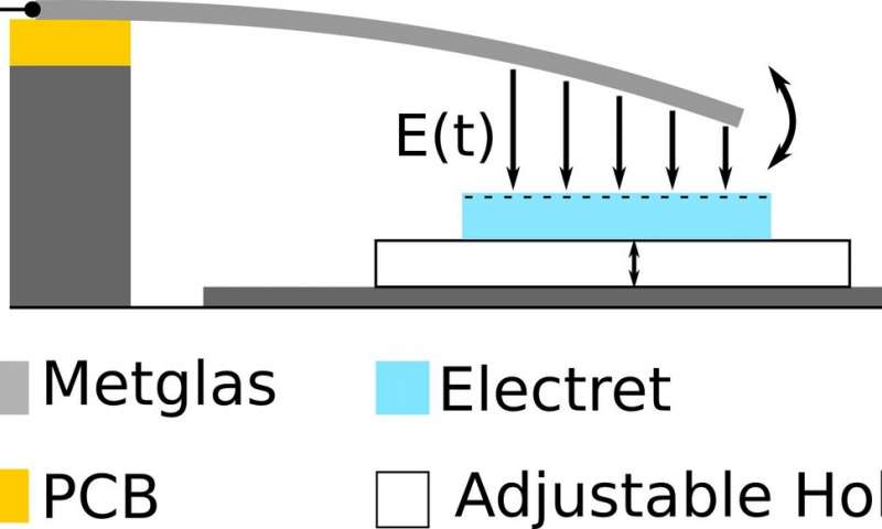 通過施加磁場,彎曲梁振動。永久充電的駐極體(藍(lán)色)拉動彎曲梁。這樣,他的振動力變得更強(qiáng),并且發(fā)出的電信號也更強(qiáng)。學(xué)分:基爾大學(xué)