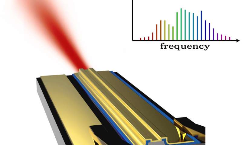 在維也納工業(yè)大學(xué),頻率梳是用量子級聯(lián)激光器產(chǎn)生的。這些特殊的激光器是由許多層組成的半導(dǎo)體結(jié)構(gòu)。當(dāng)電流通過結(jié)構(gòu)時(shí),激光會(huì)發(fā)出紅外范圍內(nèi)的光?梢酝ㄟ^調(diào)整圖層結(jié)構(gòu)的幾何形狀來控制光的屬性。