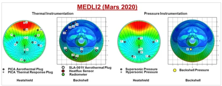 MEDLI2隔熱板和后殼上各種傳感器的位置。圖片由NASA提供