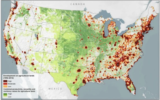 僅在 1992 年至 2012 年之間,美國(guó)農(nóng)業(yè)企業(yè)就因開(kāi)發(fā)損失了大約 3100 萬(wàn)英畝的耕地。