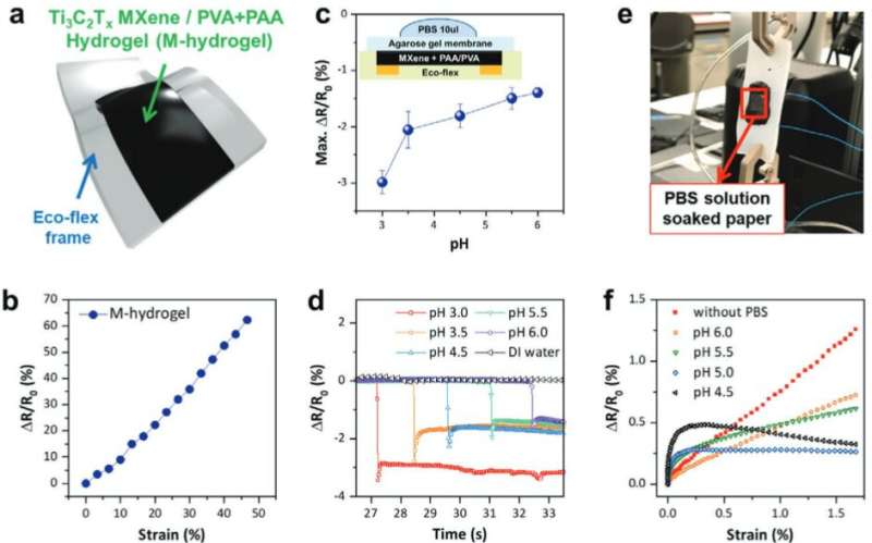 使用新型 MXene水凝膠化合物開發(fā)的原型可穿戴傳感器能夠通過隨著機械應力的增加產生不同的電阻模式來跟蹤肌肉運動。當傳感器暴露于酸性或堿性溶液形式的額外離子時,這些模式會立即發(fā)生變化。