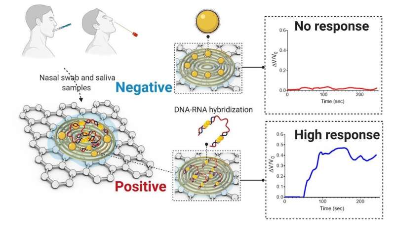 研究人員之前在ACS Nano上發(fā)表的早期工作中展示了所開發(fā)的傳感探針的靈敏度。病毒RNA與這些探針的雜交會導(dǎo)致傳感器電響應(yīng)的變化。AuNP帽加速電子轉(zhuǎn)移,當(dāng)通過傳感平臺廣播時(shí),導(dǎo)致輸出信號增加并指示病毒的存在。