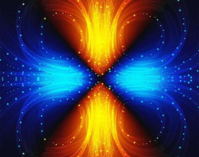 波士頓學(xué)院的一組研究人員發(fā)現(xiàn),光電流沿著Weyl半金屬的一個(gè)晶體軸流入(用藍(lán)色表示),并沿著垂直軸流出(用黃色/橙色表示),這里表示為團(tuán)隊(duì)開(kāi)發(fā)的一種新技術(shù)使用量子磁場(chǎng)傳感器來(lái)可視化電流。來(lái)源:波士頓學(xué)院周實(shí)驗(yàn)室