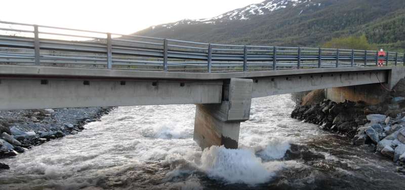 去年在Nord-Troms縣E6高速公路上受損的Badderen橋。圖片來(lái)源:挪威公共道路局的Frode Lyng Hansen。