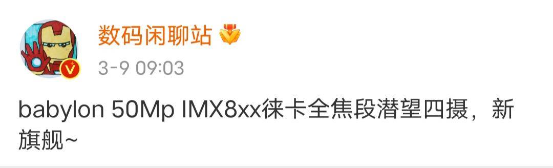 今日,博主@數(shù)碼閑聊站爆料“babylon 50Mp IMX8xx徠卡全焦段潛望四攝,新旗艦~”該博主后來將該條爆料信息改為了“早”。根據(jù)評論區(qū)可知,該博主爆料中所提到的機(jī)型或?yàn)樾∶?4 Pro,意為小米14 Pro的后置主攝或?yàn)?000萬像素,搭載索尼IMX8xx大底傳感器,擁有徠卡全焦段潛望四攝。