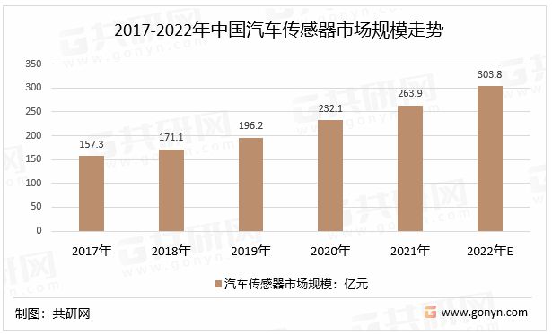 2017-2022年中國汽車傳感器市場(chǎng)規(guī)模走勢(shì)