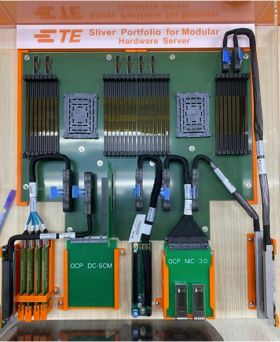 TE的OTB布線系統(tǒng)由TE的OIF兼容協(xié)同封裝銅模塊與TE的OIF兼容microLGA細(xì)間距插座技術(shù)相匹配組成。這種聯(lián)合封裝的銅模塊和插座解決方案將很快由OIF作為行業(yè)標(biāo)準(zhǔn)解決方案發(fā)布,提供多達(dá)32個(gè)通道,每個(gè)通道的速度為112 Gbps,每個(gè)模塊的總帶寬為3.2 Tbps,有助于實(shí)現(xiàn)網(wǎng)絡(luò)交換、人工智能/機(jī)器學(xué)習(xí)和計(jì)算中的各種下一代應(yīng)用。在此演示中,共封裝銅模塊通過電纜連接到四倍小尺寸可插雙密度 (QSFP-DD) OTB的4個(gè)端口,但也可以連接到背板連接器等其他應(yīng)用。