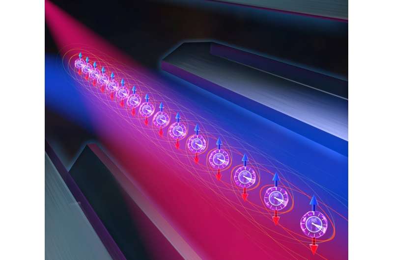 “相鄰粒子之間的相互作用隨著粒子之間的距離而減少。因此,我們使用自旋交換相互作用來(lái)允許系統(tǒng)表現(xiàn)得更集體,”因斯布魯克大學(xué)理論物理系的Raphael kaubr<e:1>格解釋說(shuō)。因此,鏈中的所有粒子相互糾纏并產(chǎn)生所謂的壓縮量子態(tài)。