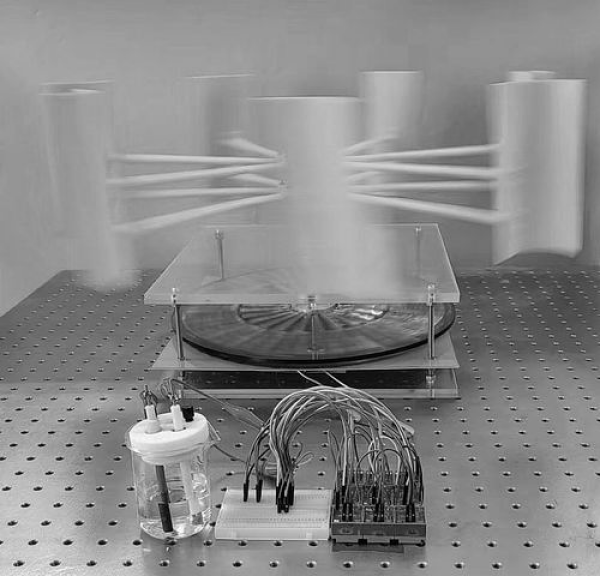 反應(yīng)能進(jìn)行下去了,團(tuán)隊(duì)又發(fā)現(xiàn)了新問(wèn)題。為了實(shí)現(xiàn)盡可能多地回收磷酸鐵鋰,實(shí)驗(yàn)中要有足夠多的電量。但團(tuán)隊(duì)以前的研究專(zhuān)注于“單位面積的輸出”,為滿(mǎn)足電化學(xué)反應(yīng)需要,他們重新研制了一臺(tái)直徑約30厘米的旋轉(zhuǎn)式摩擦納米發(fā)電機(jī),并通過(guò)優(yōu)化輸出和降壓增流措施,滿(mǎn)足了實(shí)驗(yàn)需要。