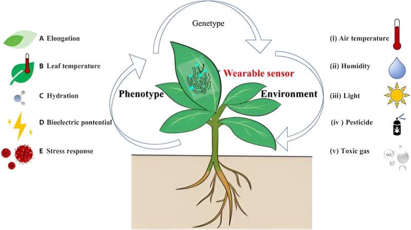 圖1穿戴式傳感器用于監(jiān)測(cè)植物表型和環(huán)境
