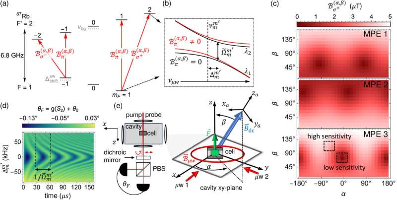 利用參考多個微波極化橢圓(MPE)的拉比振蕩頻率進行矢量磁測量。圖片來源:《Optica》(2024 年)。DOI: 10.1364/OPTICA.542502