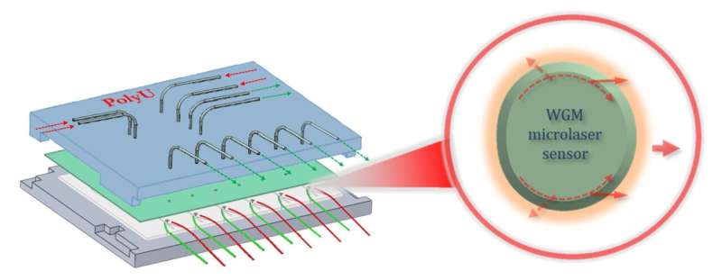 新型聚合物回音壁模式微激光傳感器更易集成到芯片實驗室設備中,有望實現(xiàn)疾病早期診斷。圖片來源:香港理工大學張阿平(A. Ping Zhang)