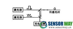 3、在電力系統(tǒng)光纜監(jiān)測(cè)中的應(yīng)用電力系統(tǒng)光纜種類繁多,加之我國(guó)地域廣闊,各地環(huán)境差異很大,所以光纜的環(huán)境也很復(fù)雜,其中溫度和應(yīng)力是影響光纜性能的主要環(huán)境因素。因此,在監(jiān)測(cè)光纖斷點(diǎn)的同時(shí)也對(duì)光纜所處溫度和應(yīng)力情況進(jìn)行監(jiān)測(cè),可見對(duì)光纜的故障預(yù)警及維護(hù)意義深遠(yuǎn)。通過測(cè)量沿光纖長(zhǎng)度方向的布里淵散射光的頻移和強(qiáng)度,可得到光纖的溫度和應(yīng)變信息,且傳感距離較遠(yuǎn),所以有深遠(yuǎn)的工程研究?jī)r(jià)值。基于布里淵光時(shí)域反射(BOTDR)的分布式光纖傳感系統(tǒng),采用相干檢測(cè)技術(shù),系統(tǒng)原理如圖1所示。