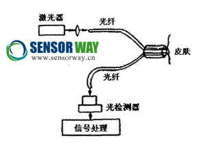 2、血流速度測(cè)量多普勒型光纖速度傳感器測(cè)量皮下組織血流速度的示意見圖2此裝置利用了光纖的端面反射現(xiàn)象,測(cè)量系統(tǒng)結(jié)構(gòu)簡(jiǎn)單。