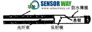 1、壓力測(cè)量。目前臨床上應(yīng)用的壓力傳感器主要用來測(cè)量血管內(nèi)的血壓、顱內(nèi)壓、心內(nèi)壓、膀胱和尿道壓力等。用來測(cè)量血壓的壓力傳感器示意見圖1。其中對(duì)壓力敏感的部分是在探針導(dǎo)管末端側(cè)壁上的一塊防水薄膜,一面帶有懸臂的微型反射鏡與薄膜相連,反射鏡對(duì)面是一束光纖,用來傳遞入射光到反射鏡,同時(shí)也將反射光傳送出來。當(dāng)薄膜上有壓力作用時(shí)。薄膜發(fā)生形變且能帶動(dòng)懸臂使反射鏡角度發(fā)生改變,從光纖傳來的光束照射到反光鏡上,再反射到光纖的端點(diǎn)。由于反射光的方向隨反射鏡角度的變化而改變,因此光纖接收到的反射光的強(qiáng)度也隨之變化。這一變化通過光纖傳到另一端的光電探測(cè)器變成電信號(hào),這樣通過電壓的變化便可知探針處的壓力大小。