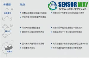 文章所描述的融合庫使用加速度計、磁力計和陀螺儀傳感器信號補償彼此的缺點,并提供高精度、可靠和穩(wěn)定的方位數(shù)據(jù)。下面著重分析這些關鍵器件的優(yōu)缺點,以及它們是如何補償彼此缺點的(圖1)。